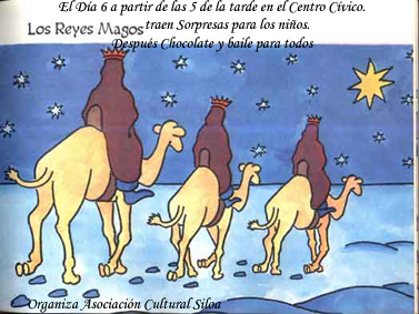 El Dia 6 a partir de las 5 de la tarde en el Centro civico los Reyes Magos nos traen sorpresas para los niños, despues chocolate y baile para todos.